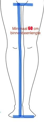 Voor de kleinste crossklantjes is van belang dat binnenbeen lengte minimaal 60cm is gemeten van grond tot kruis.